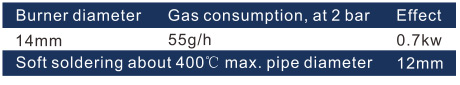 Pin-point burner with the finest flame for precision work such as gold and silver forging Silver soldering about 615'C Work pressure 2 bar