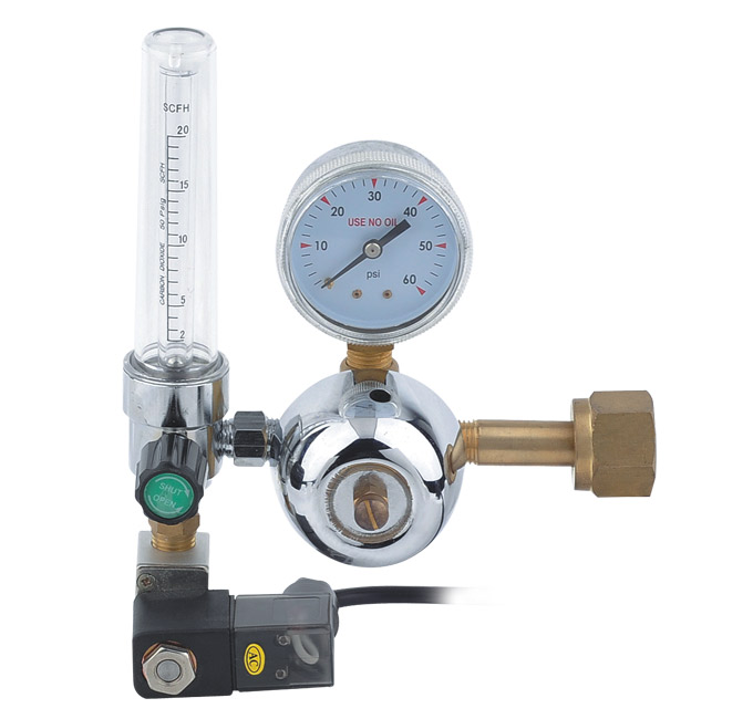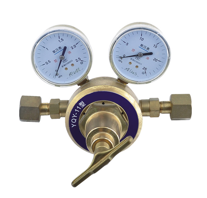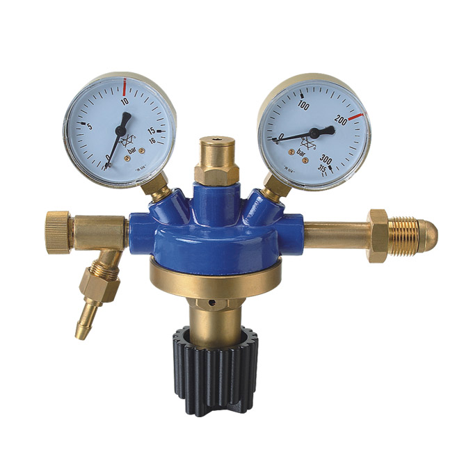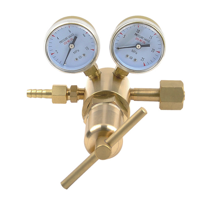 Pressure regulator with perssure and contents gauges.