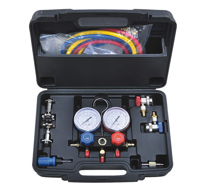 Connection:1/4 SAE Selectable Refrigerants: R12 R22 R502 High quality aluminum alloy valve body. Gentle and comfortable design hand wheel structure Prevalent streamline design pressure gauge Durable product quality