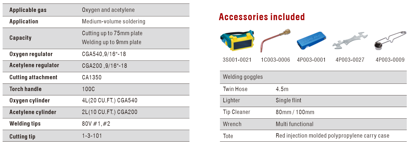 *Contains all the equipment that needed for cutting, welding and brazing in a rugged surroundings, plastic carrying case.