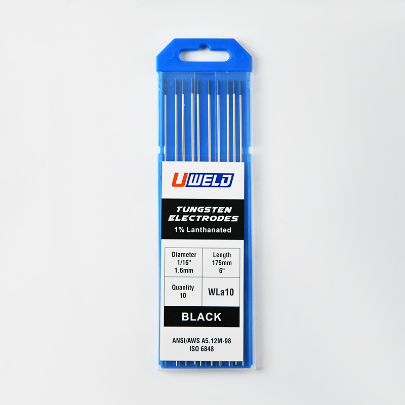 WL10 All tungsten is packaged 10 pieces of 7" and priced per box Low current capacity. Recommended for use in AC welding of aluminum. Please choose from: .020″ | .040″ | 1/16″ | 3/32″ | 1/8″ | 5/32″ | 3/16″ | 1/4″