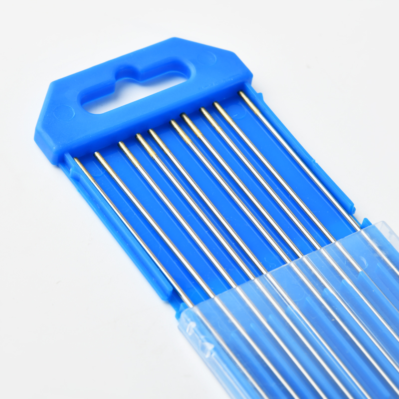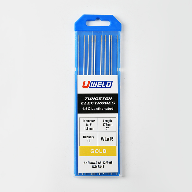 Gold Lanthanated Electrodes for TIG Welding work in both AC and DC (electrode negative) settings since they can be sharpened or balled respectively depending on the project. It can weld steel from a square wave power source and it offers reliable arc starts and arc stability.