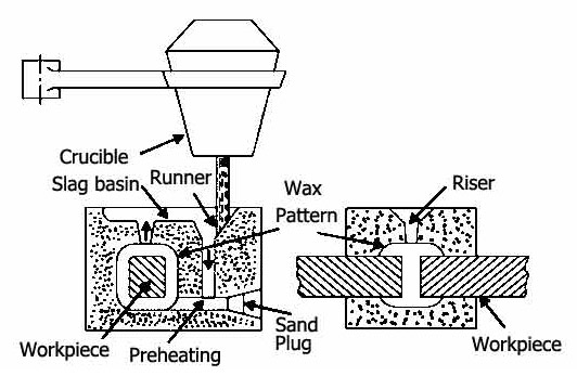 When thermit (a mixture of aluminum powder and iron oxide) is ignited it leads to an exothermic reaction non-violent. The excessive heat melts the metal and pours at the needed joint surfaces. The liquid metal solidifies on cooling to create a solid welding joint.